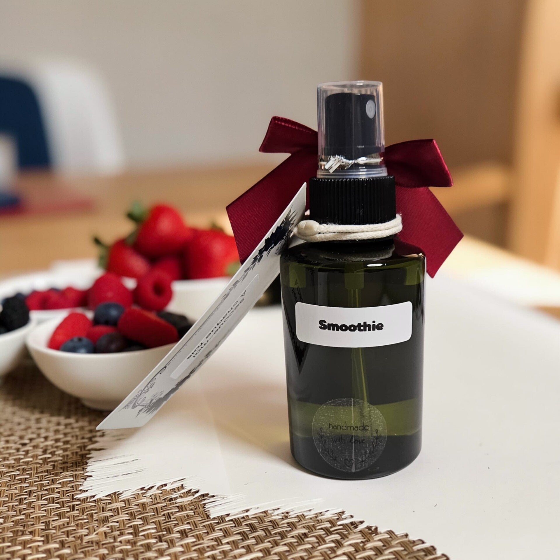 Laissez-vous emporter par l'explosion fruitée de notre parfum d'ambiance Smoothie, une senteur gourmande et enjouée qui évoque le plaisir d'un jus frais dégusté en plein été. Il est parfait pour créer une atmosphère chaleureuse et joyeusement fruitée, transformant chaque pièce en une pause de douceur irrésistible.